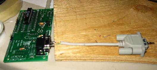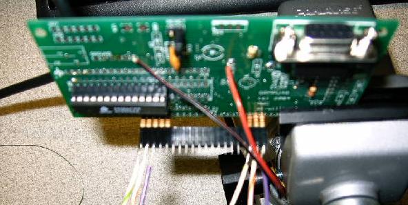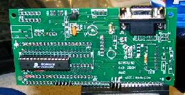 | Speaking of the serial interface, here I've added a right angle female RS-232 port to the top edge of the board. I only need two pins, but I went ahead and soldered all of the connections, just for completeness' sake. |