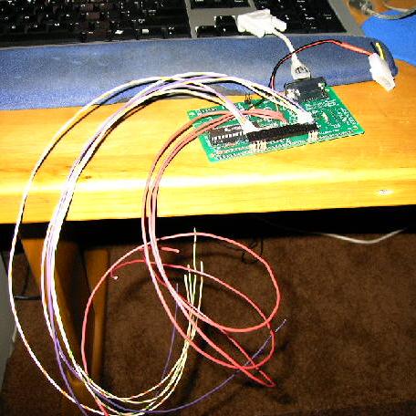 | This big heap of wires just provides the power and signal for the board, and incorporates one 22k resistor into the signal wire to filter it a bit. That's all. See how quickly the wiring gets really complicated and messy looking on this kind of thing? Imagine if there was actually someone in here working who knew a thing or two about electrical engineering -- I'm sure they could make a much better mess than that poster. |