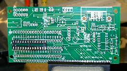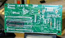 | As it is, I'm reasonably comfortable soldering all of the components to the board, one at a time. I started with the integrated circuit socket, as this was the centerpiece of the entire system. The socket is the little black rectangle with the silver dots on the left side of the board. |