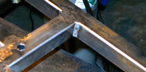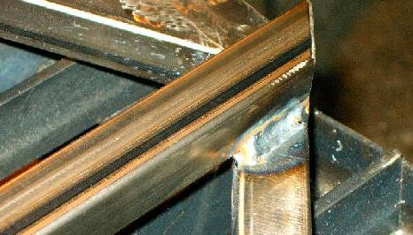 | It's really amazing just how far my welding has come over the course of this project. This is a picture of one of the fillet welds I made on the top panel when I originally constructed it. See how it doesn't really solidly join the two members? It was made too cold (meaning that I move the gun too fast), and didn't penetrate the steel deeply enough. |