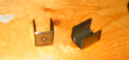 | The final question was how to constrain the bottom vibration control mounts in the slot. Pictured here is the simple solution that I devised. To make these, I simply cut short sections of square tubing, drilled holes in them, and cut one wall off. That left these little steel channels that will constrain the mounts nicely. |