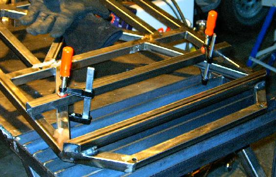 | This setup is remarkable because this almost never happens. Here you see the second member clamped into place very simply with two clamps. There were supporting members in exactly the right places so that it was secure and exactly held in place, I didn't have to worry about melting the clamps (which I do a lot), and I didn't have to work out some contrived system of spacers and dozens of clamps. This is very rare indeed. |