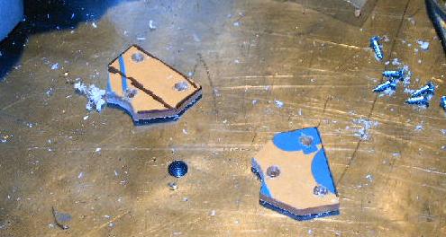 | Nothing makes you appreciate working with Lexan more than accidentally grabbing a sheet of acrylic. I was having a bunch of trouble cutting this sheet (it was melting and clogging up the blade something awful). I thought it was just a dull blade, but as soon as I started drilling the holes I knew I wasn't working with polycarbonate. You see, Lexan is a clear polycarbonate plastic sheet, while acrylic is another form of clear plastic. Lexan, when in the proper thicknesses and laminations, is bulletproof. Acrylic is not. Lexan does not chip or flake. Ever. Acrylic does. Lexan has an extremely high melting point, making it easy to machine. Acrylic melts at cutting temperature, which causes cutting heads and blades to bog down. Anyway, this is acrylic. I'm too lazy to make another one out of Lexan. It doesn't have to stop any bullets, so it should be fine. |